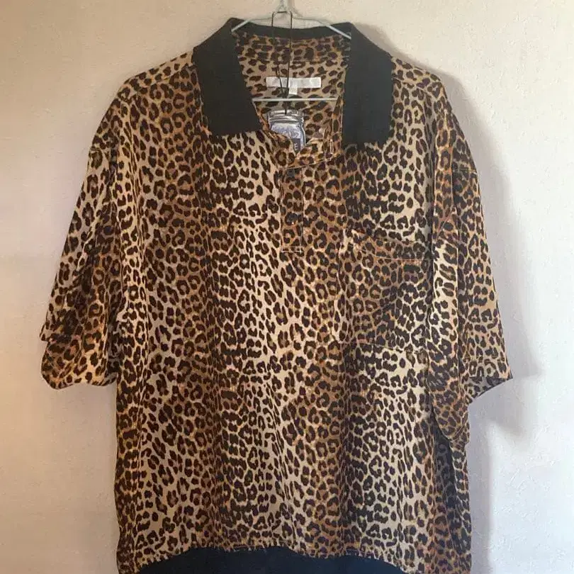 레오파드 무늬 피케 셔츠 베이지/블랙