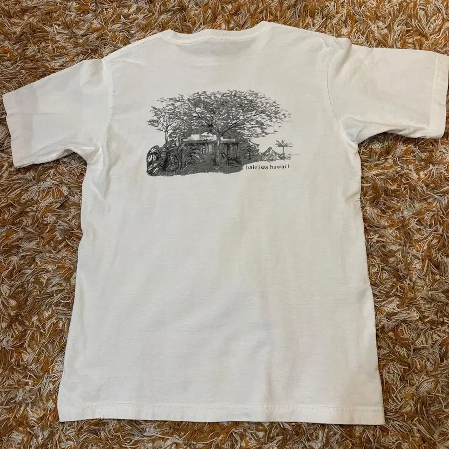 하와이 오아후섬 할레이와 한정 T셔츠 할레이와 샵 풍경이 그려진 한정 T셔츠 hale'iwa hawai'i의 그래픽이 특징인 화이트 코튼 T셔츠. - 디자인: hale'iwa hawai'i의 그래픽 프린트 - 색상: 화이트 - 소재: 코튼 방문해 주셔서 감사합니다. 색상 - 화이트 계열 패턴 디자인 - 프린트 ( 로고 등 ) 얼룩, 찢김, 냄새 등 - 없음