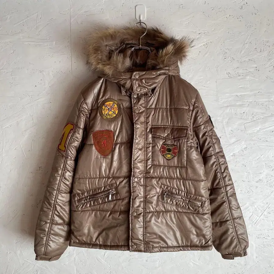 • 퍼 광택 다운 자켓 브라운 Y2K 그런지 시크 스타일