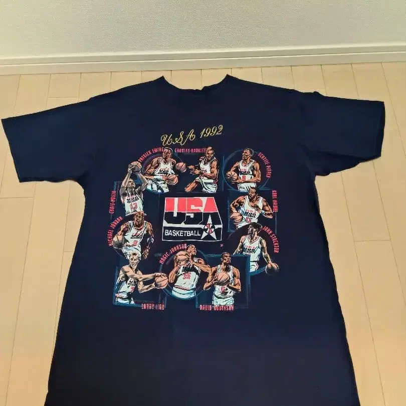 1992년 USA 농구팀 선수가 그려진 T셔츠.