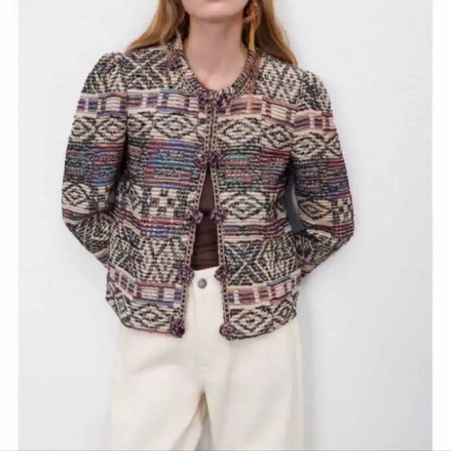 • ZARA 자카드 니트 가디건 크롭