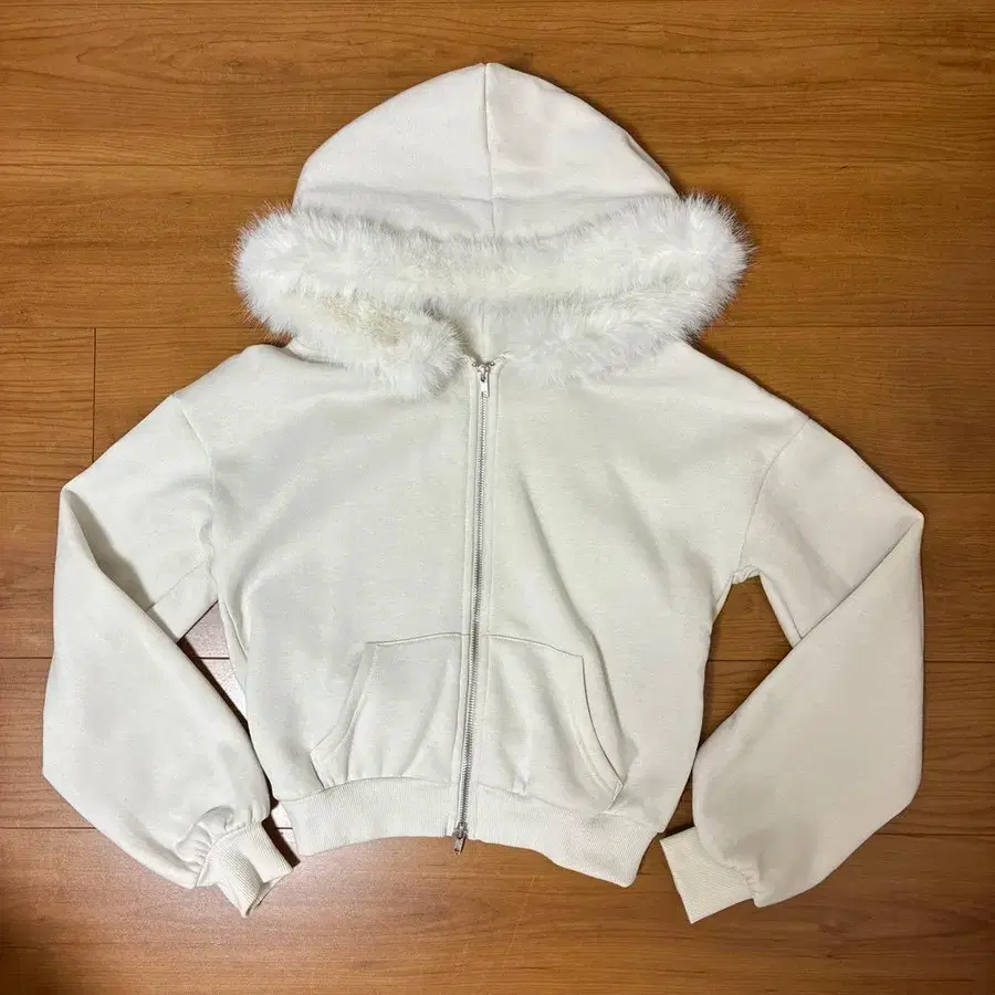 즉시 구매 O 숏 기장, 퍼 후드가 달린 후드티 안쪽은 속기모입니다. 색상 - 화이트 계열 얼룩, 찢김, 냄새 등 - 없음