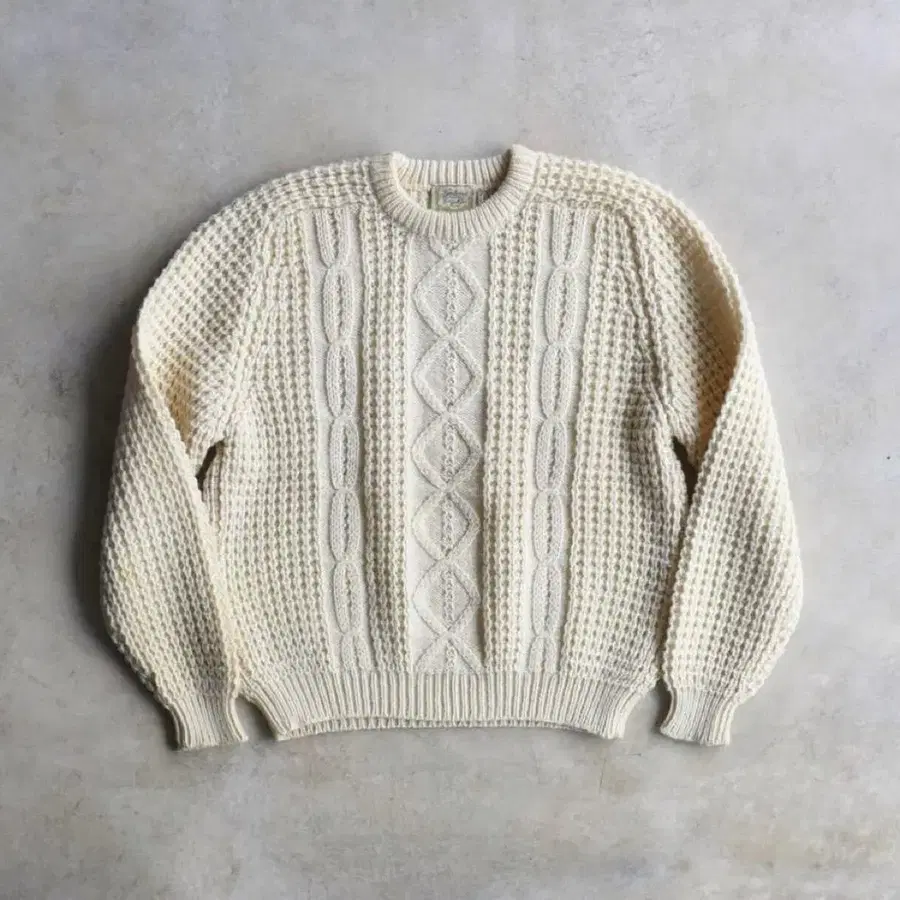 [생명줄]을 의미하는 밧줄 무늬나, 가족의 번영을 기원하는 뜨개 무늬 등, 아란 니트 특유의 아름다운 입체적인 무늬가 전체에 베풀어진 레어 개체.