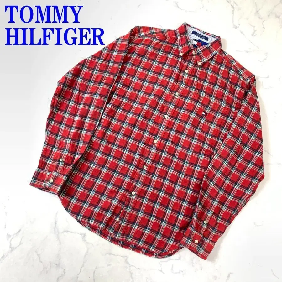 타미힐피거 긴팔 셔츠 플란넬 셔츠 면 체크 빨간색 L C1624