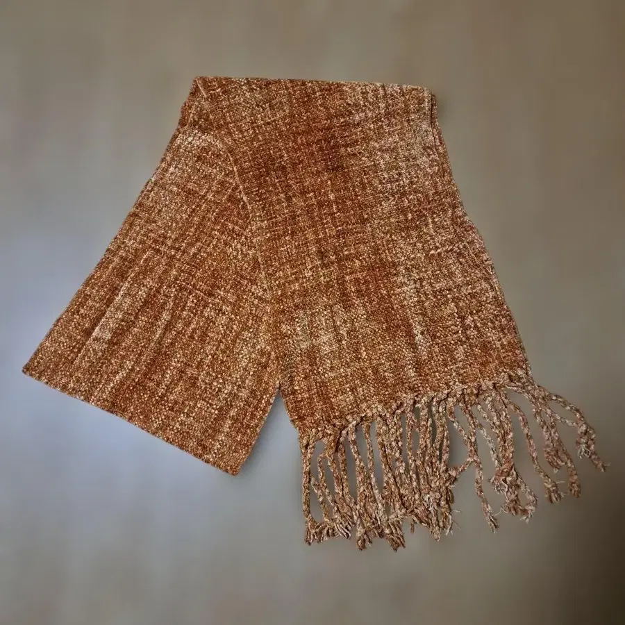 오렌지 계열 프린지 장식 직물 머플러