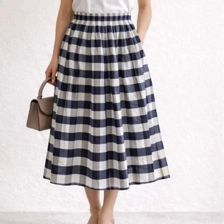 네이비 x 화이트 스트라이프 플레어 스커트 FREE size