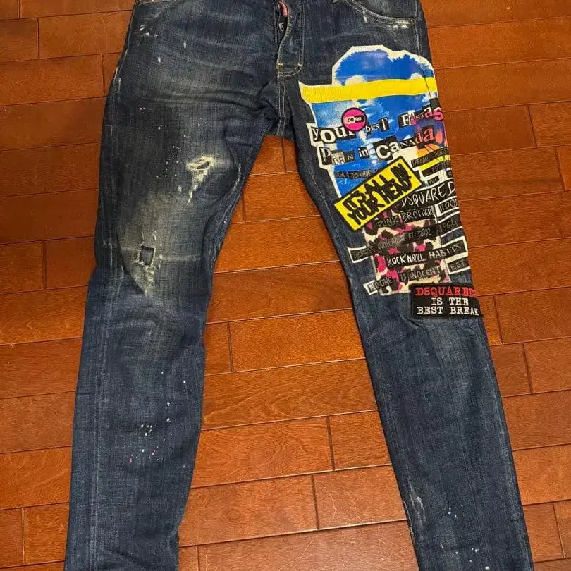 데미지 가공 그래픽 데님 팬츠