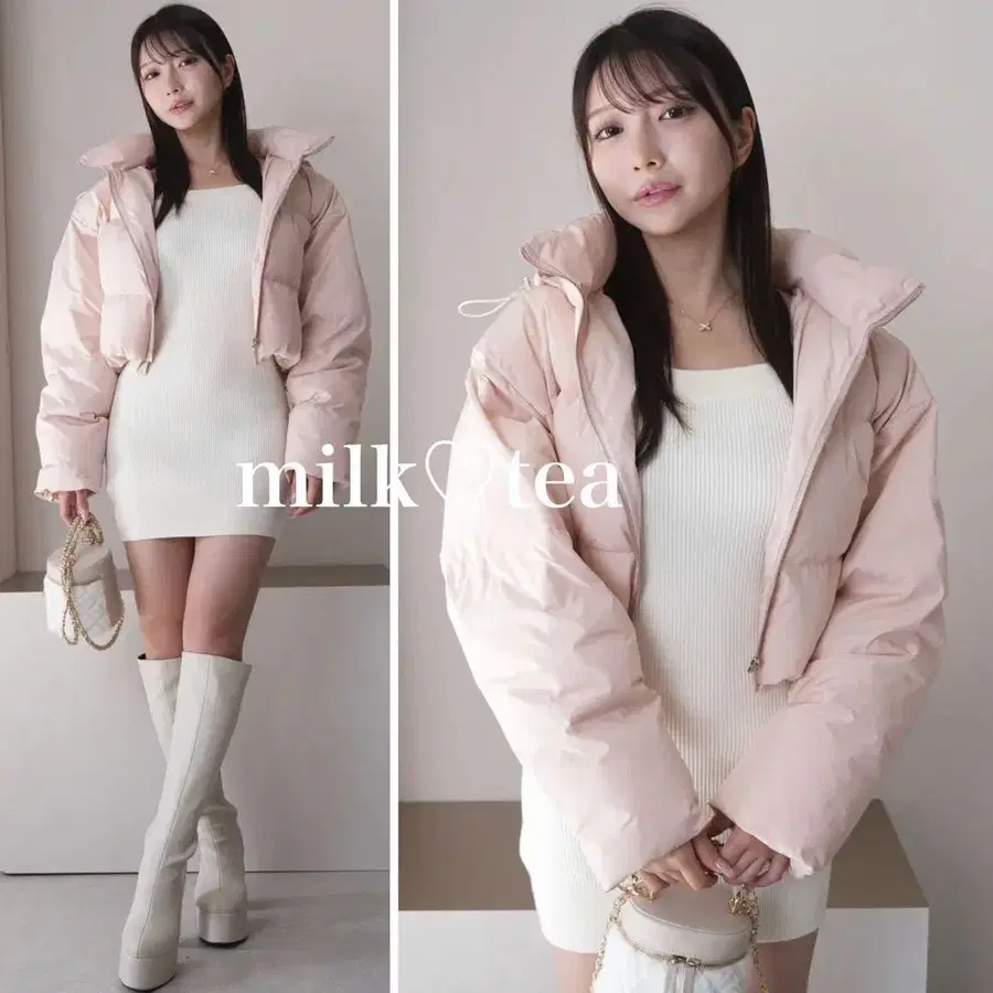 택 포함 새상품 립 서비스 크롭 페이크 다운 자켓 핑크 M