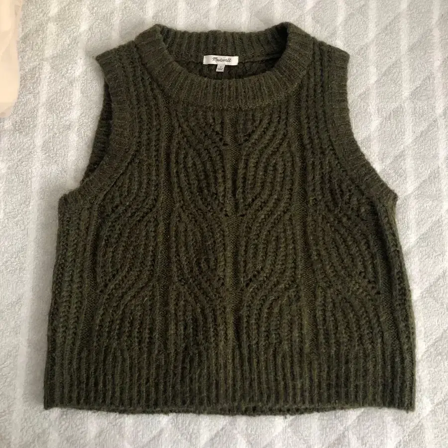 Madewell 케이블 니트 슬리브리스 베스트 S 올리브