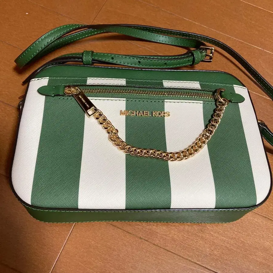 스트라이프 디자인의 그린과 화이트 합성 피혁 숄더백. - 브랜드: MICHAEL KORS - 색상: 그린/화이트 - 디자인: 스트라이프 - 소재: 합성 피혁 - 스타일: 숄더백 가로 24 세로 16 폭 5 방문해 주셔서 감사합니다. 색상 - 그린 계열 얼룩, 찢김 등 - 없음