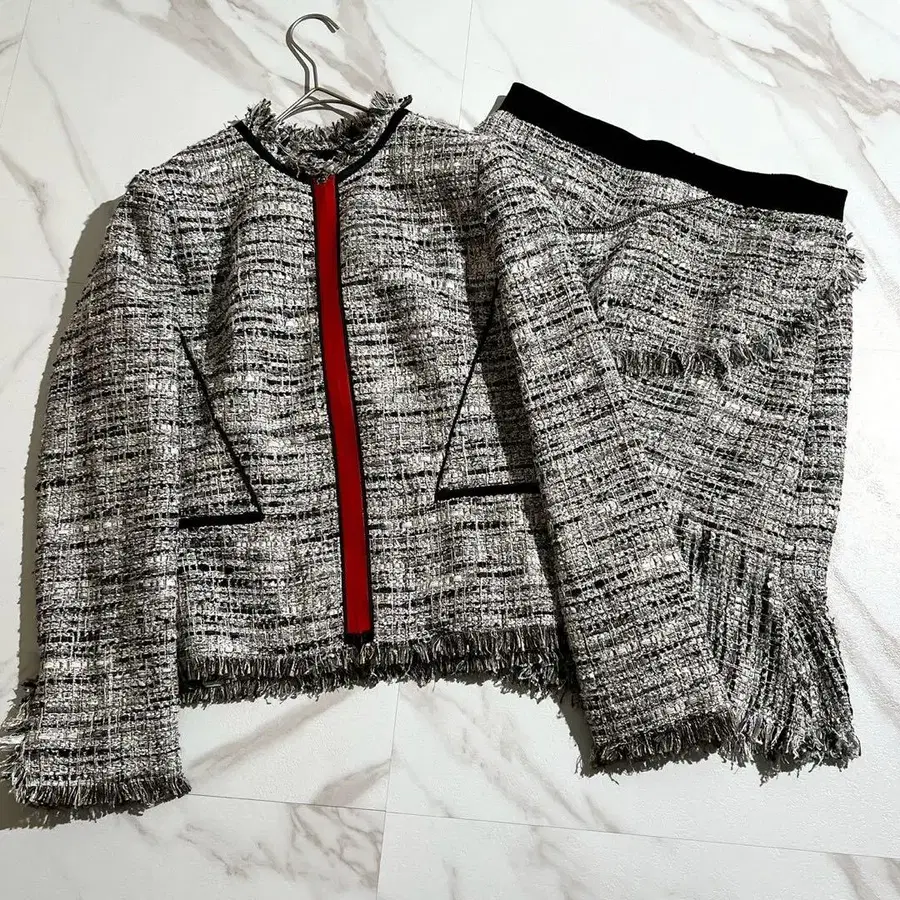 자켓과 스커트에 프린지가 장식되어 있습니다.