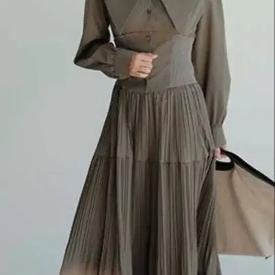 빅 칼라 커팅으로 코르셋 같은 허리 디자인을 돋보이게 하는 모드한 1벌입니다.