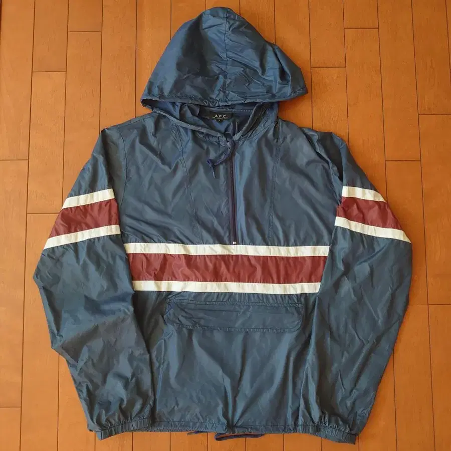 네이비 스트라이프 디자인, 후드 부착 풀오버 나일론 자켓. - 브랜드: APC - 색상: 네이비 - 디자인: 스트라이프 - 소재: 나일론 - 후드: 후드 부착 - 스타일: 풀오버 방문해 주셔서 감사합니다. 색상 - 네이비 계열 소재 - 나일론 얼룩, 찢김, 냄새 등 - 없음 작게 접어서 휴대할 수 있습니다. 새상품이 아닌 착용했던 구제 의류입니다.