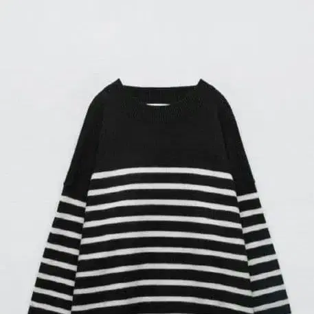 ZARA 보더 니트 스웨터 긴팔 스트라이프 블랙과 화이트