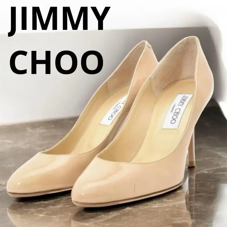 새상품급 지미추 펌프스 36 베이지 에나멜 페이턴트 하이힐