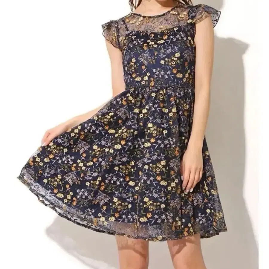 LILYBROWN 플라워 자수 원피스 네이비