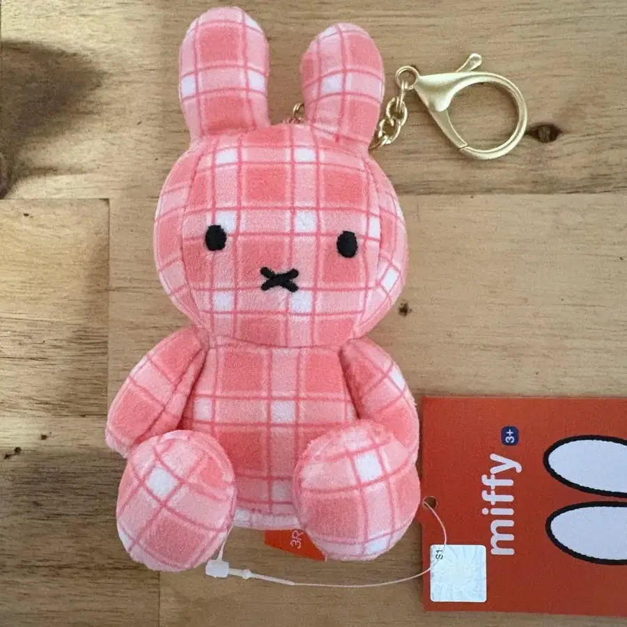 한국 한정판 미피 마스코트 키링 체크 핑크