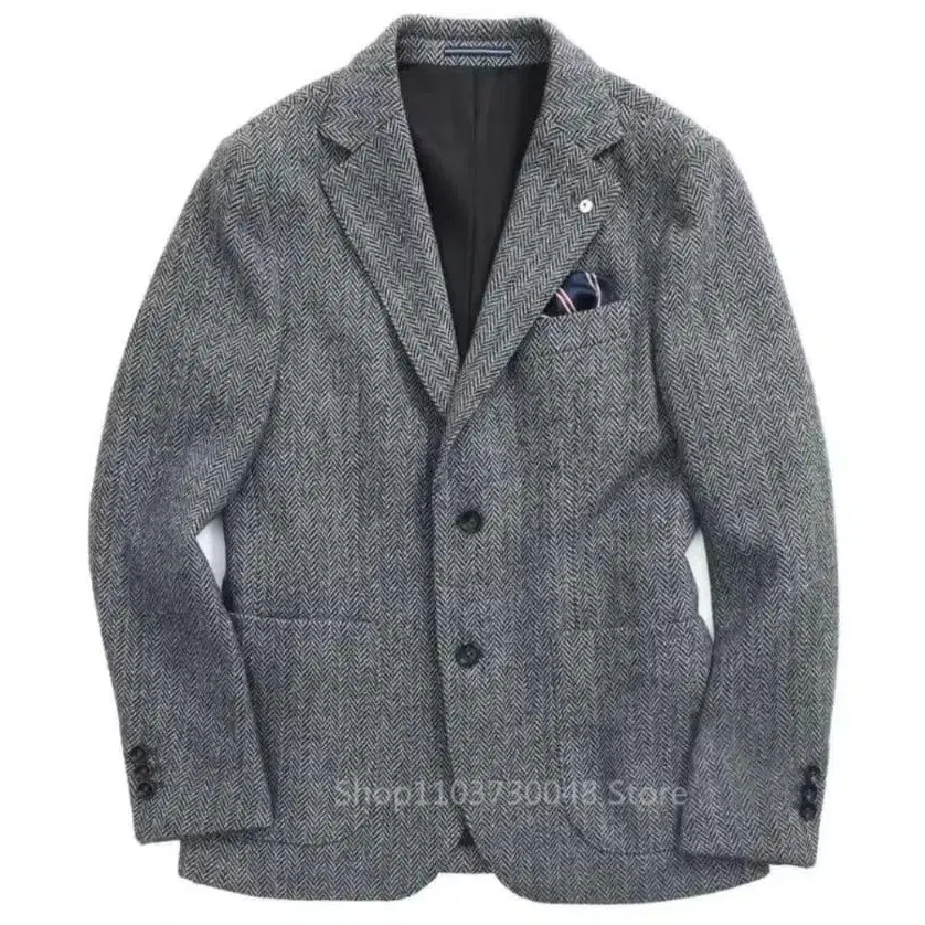 헤링본 테일러드 자켓 라이트 그레이 노치드 라펠 캐주얼