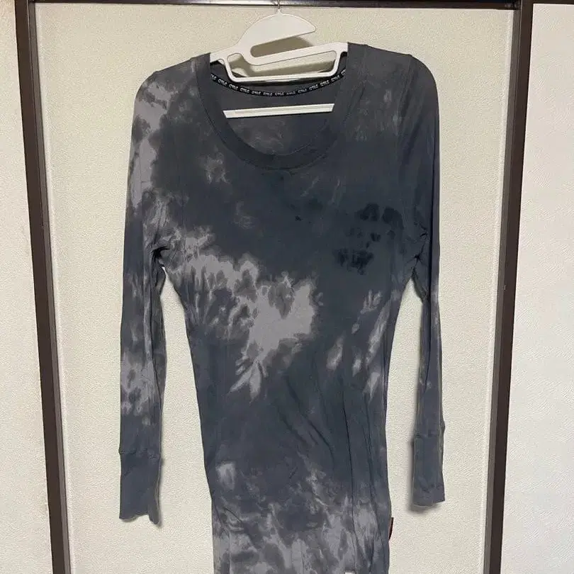 그레이 색상의 타이다이 디자인 긴팔 티셔츠, 슬림 핏으로 캐주얼하게 연출하기 좋습니다. 사이즈 0