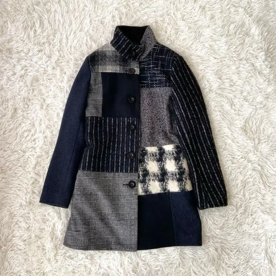새상품급 Desigual 데시구알 롱 코트 패치워크 알파카 38