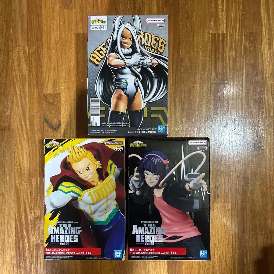 나의 히어로 아카데미아 피규어 THE AMAZING HEROES ■ vol.27 통형 미리오 ■ vol.28 이로 향카 AGE OF HEROES ■ No.24 미르코 의 3세트입니다. 미개봉 새상품 프라이스 경품이므로 흠집, 찌그러짐, 눌림, 테이프 벗겨짐, 테이프 이중 부착 등 이미지를 확인하신 후 이해하시는 분만 구매 부탁드립니다. 즉시 구매도 OK입니다. 발송은 종이상자에 완충재를 넣어 보내드립니다. #나의 히어로 아카데미아 #히로아카 #통형 미리오 #이로 향카 #미르코