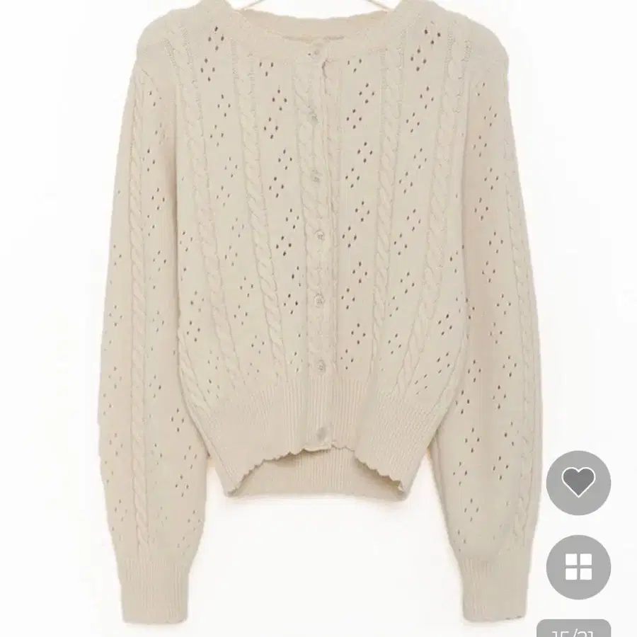 • [D-LOOP] 베이지 화이트 케이블 짜임 외 벌룬 긴팔 니트 가디건