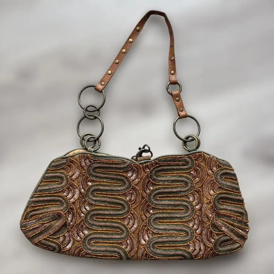 JAMIN PUECH 브라운 자수 핸드백
