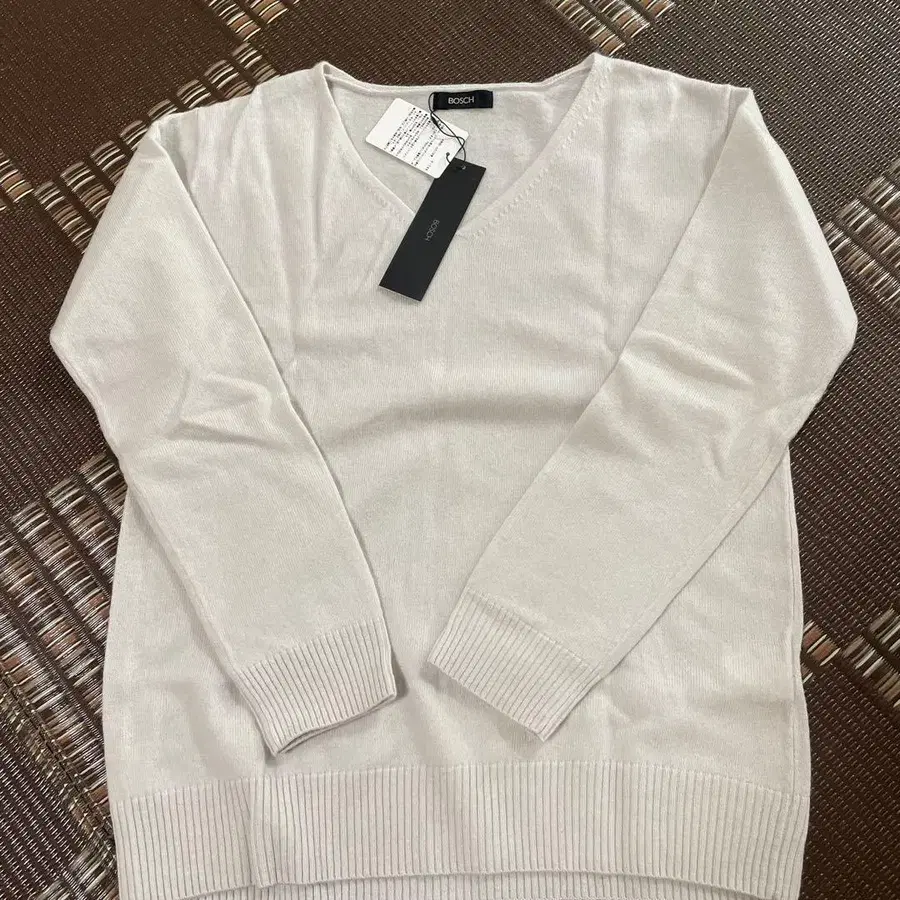 BOSCH 그레이 화이트 V넥 긴팔 스웨터