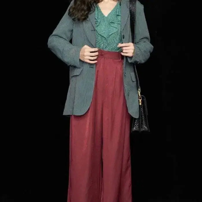• 레트로 노카라 자수 자켓 블랙 블라우스, 스커트 3종 세트