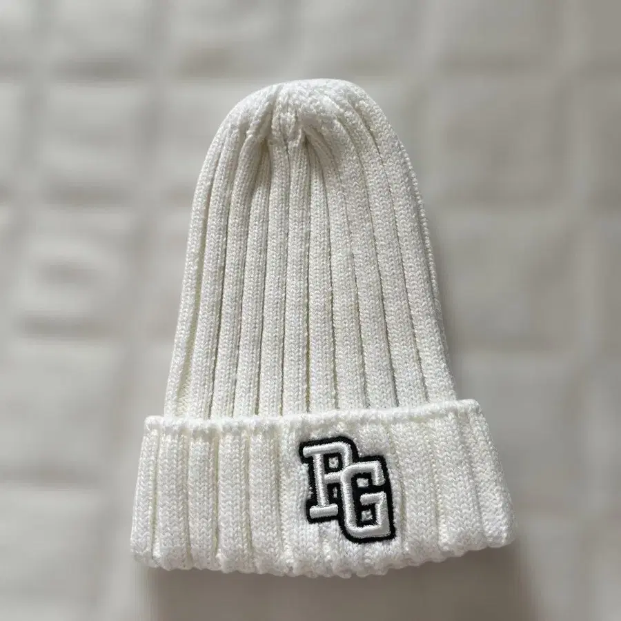 PEARY GATES PG 로고 포함 화이트 니트 모자