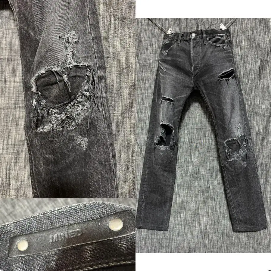 하드 데미지 가공 블랙 데님