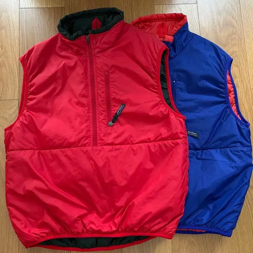퍼프볼 베스트 2장 세트입니다. 레드는 상태가 매우 좋으며, 약간의 얼룩만 있습니다. 블루는 뒷면에 스크래치와 작은 구멍이 있지만, 크게 신경 쓰이지 않을 정도입니다. 낱개 판매 불가. 둘 다 S 사이즈입니다. 방문해 주셔서 감사합니다.