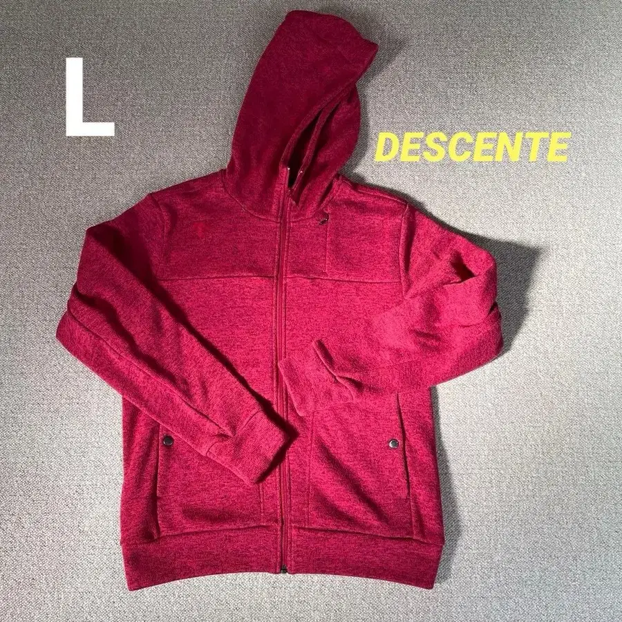[ 데상트의 빨간색 니트 후드티 후드 부착