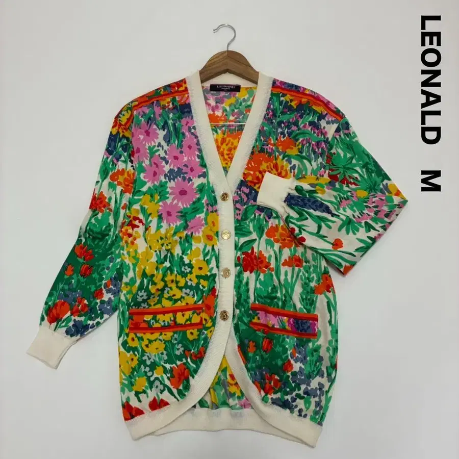 LEONALD 레오나르 V넥 롱 가디건 골드 버튼 미니 꽃무늬 M