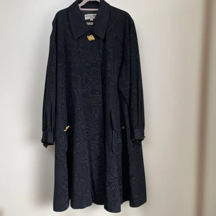 HANAE MORI 모리하나에의 코트입니다. 색상은 블랙. 사이즈는 9A3, 가슴둘레 82, 허리둘레 91, 신장 160. 겉감 아세테이트 56%, 레이온 44%. 화려한 옷차림에도 조합할 수 있는 코트입니다.