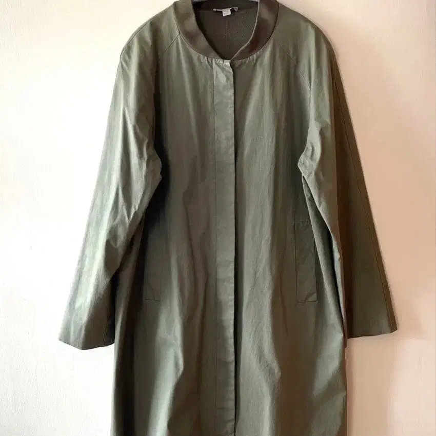 표기 사이즈 : 40 가슴 너비: 약 52 화장: 약 79 기장: 약 95 컬러: 카키 소재: 겉감 100% 코튼 안감 100% 폴리에스테르 양 사이드에 포켓, 안쪽 포켓 1개 있음. 나일론 느낌의 까슬까슬한 원단입니다. 히든 버튼 여밈 큰 데미지는 없지만, 개인 보관의 used 제품이므로 이해하신 후 검토 부탁드립니다. ※ 작게 접어서 발송됩니다. #코스 #cos #라이트아우터 #점퍼 #코트 #얇은 소재 코트