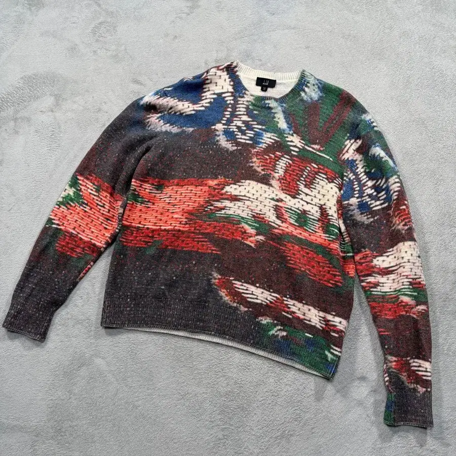 던힐 크루넥 니트 스웨터 올 패턴 울 멀티 컬러 XL