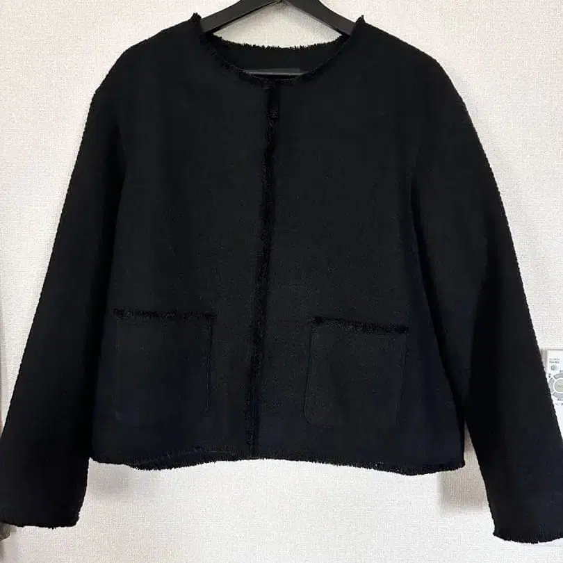 프린지 마감의 블랙 자켓, 포멀한 의류 위에 추천!