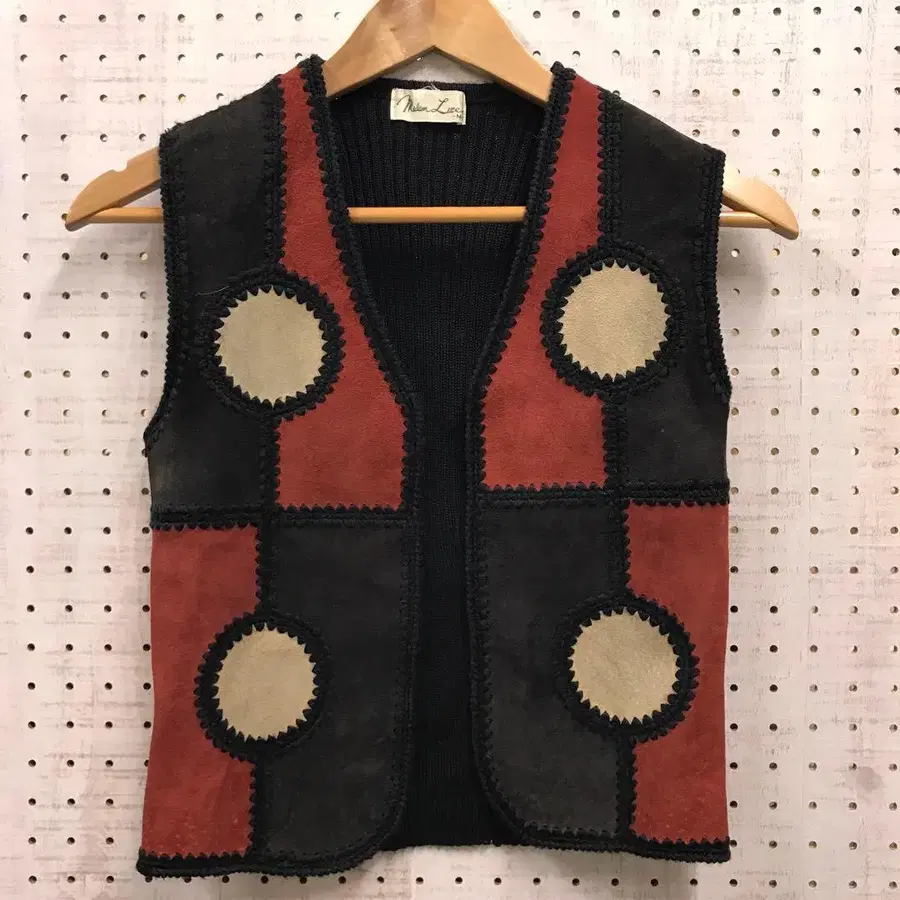 레트로 보헤미안 히피 구제 의류 돈피 스웨이드 x 니트 버튼리스 베스트