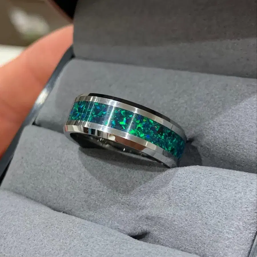 완전 풀 오더, 1점뿐인 인공 오팔 반지입니다. 그린과 블루를 주체로 한 반짝이는 유색이 매우 아름다운 반지입니다. 사이즈는 20호, 반지 폭은 8밀리입니다. 금속은 텅스텐으로, 둔탁한 광택과 무게감이 있어 고급스러움이 넘칩니다. 색상이 다른 것을 오더하고, 이 상품은 사용할 예정이 없으므로 미사용 새상품 상태로 판매합니다. 오더 비용이 상당히 들었기 때문에 저렴합니다! 케이스에 넣어 보내드립니다. 다른 사람과 겹치지 않는 1점뿐인 상품입니다. 협의 중이라도 선착순으로 부탁드립니다. 가격 협의 받습니다! #오팔 #오팔반지 #남성용반지 #20호 #오더반지