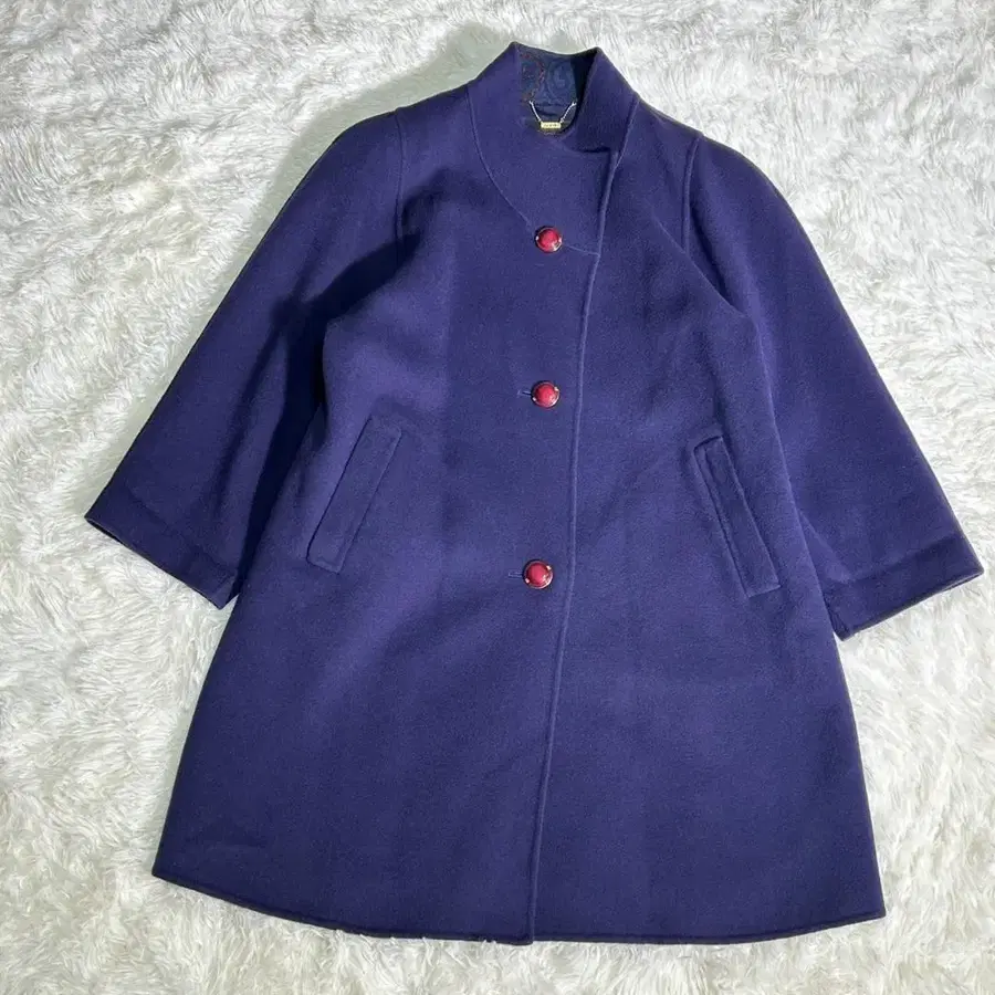 레트로 엘레강트 캐시미어 울 코트 보라색 안감 올 패턴 M