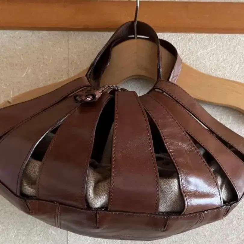 lapu-lapu 가죽 천연 가죽 복조리 핸드백 브라운