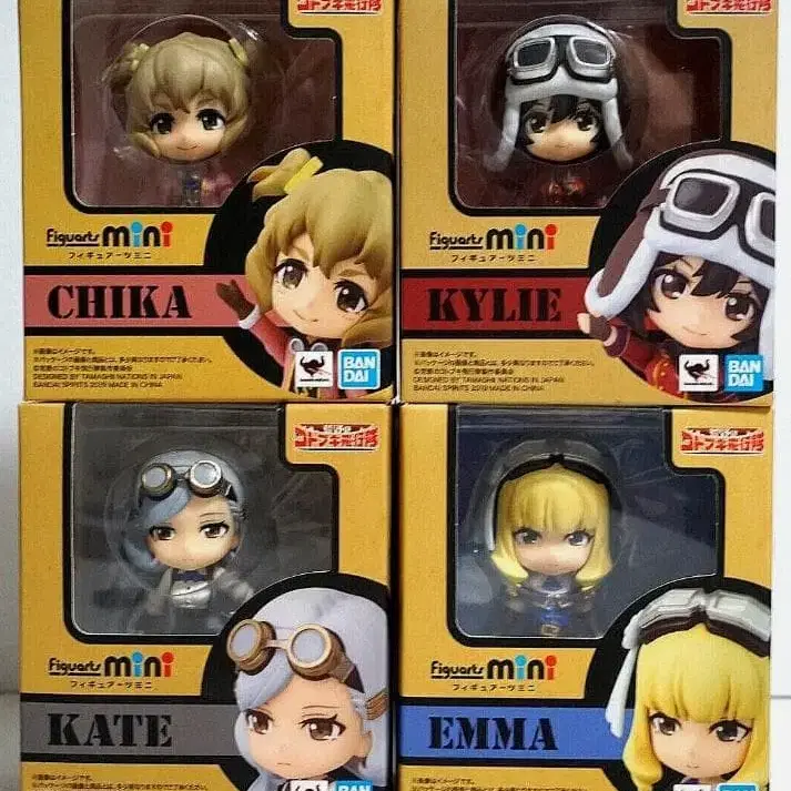 BANDAI SPIRITS의 figuarts mini 시리즈에서, 황야의 코토부키 비행대 CHIKA, KYLIE, KATE, EMMA 피규어 세트. - 캐릭터명: CHIKA - 캐릭터명: KYLIE - 캐릭터명: KATE - 캐릭터명: EMMA - 브랜드명: BANDAI SPIRITS - 시리즈명: figuarts mini 개인 보관이므로 완벽을 추구하시는 분은 삼가해 주십시오. 방문해 주셔서 감사합니다.