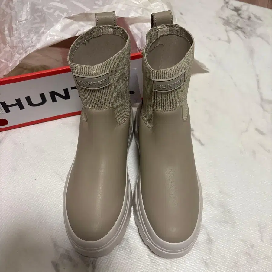 HUNTER 사이드 고어 부츠 베이지 UK4