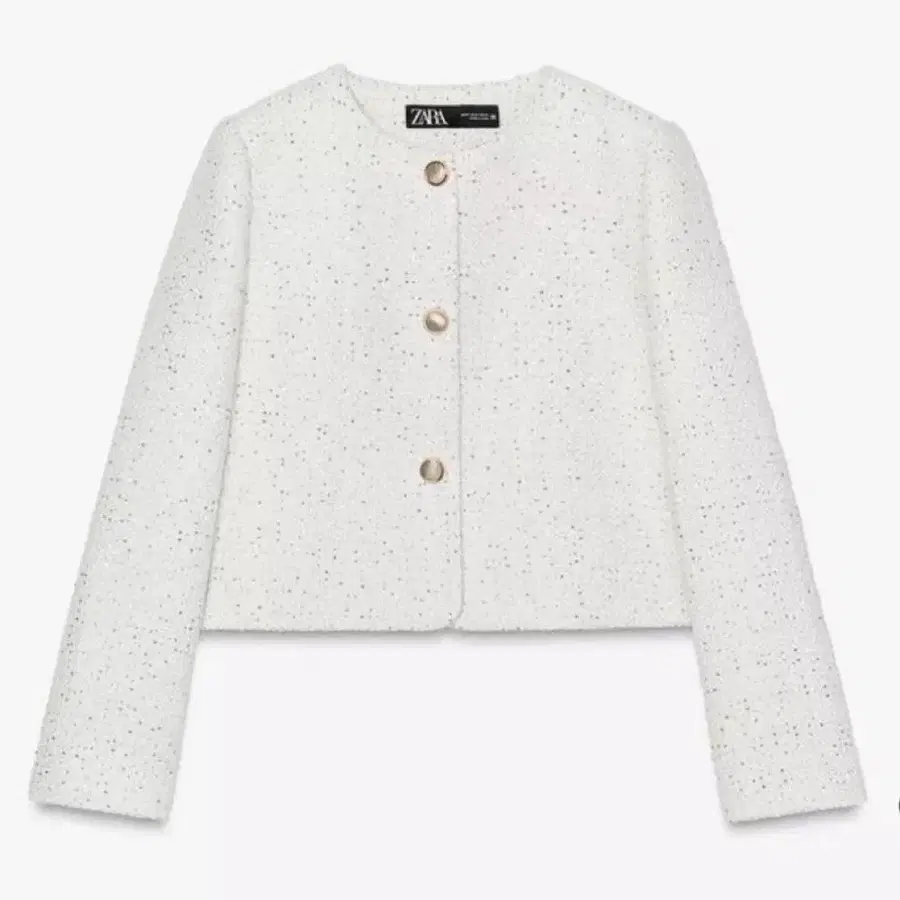 2025년에 구매했습니다. 골드 버튼이 돋보이는 트위드 소재의 노카라 자켓입니다.