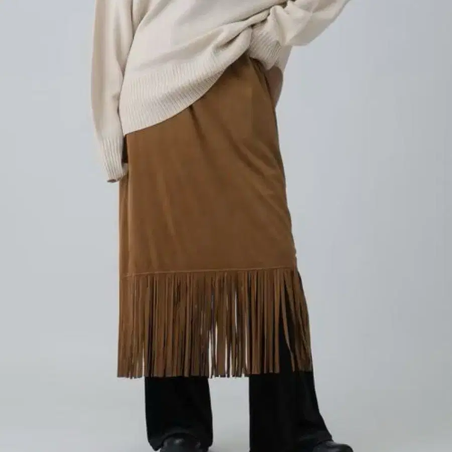 렙심 스웨이드 프린지 스커트