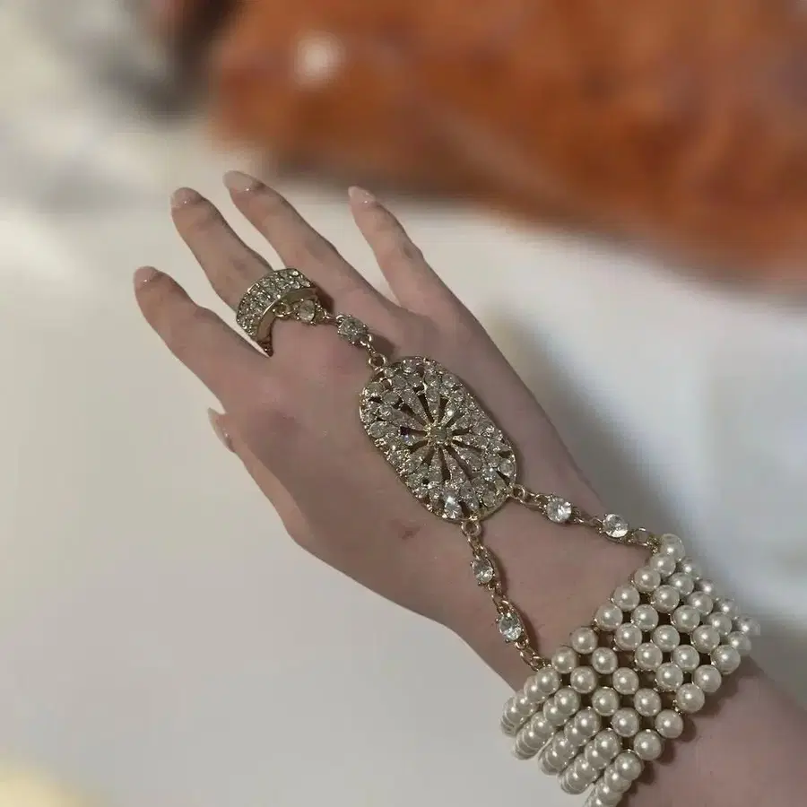 개츠비에 나올 법한 빈티지 디자인의 팔찌입니다 ♡ 부품으로 된 팔찌에서 크리스탈 체인이 반지와 연결되어 있어 상당히 멋진 디자인입니다 ♡ 큐빅의 떨어짐이나 얼룩, 녹 등은 보이지 않습니다!! 몇 년 전 해외 사이트에서 발견했지만 사용할 기회 없이 아까워서 세계관을 좋아하는 분께 양도합니다 ♡ 9940엔에 구매했습니다