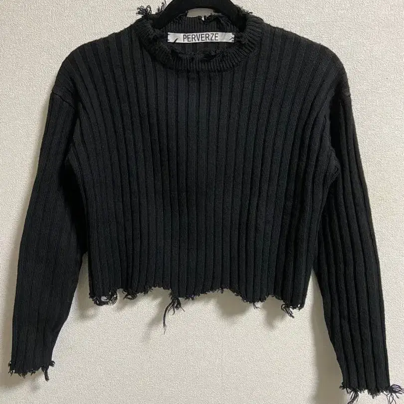 PERVERZE 크롭 리브 니트 / 블랙 / 프리 사이즈