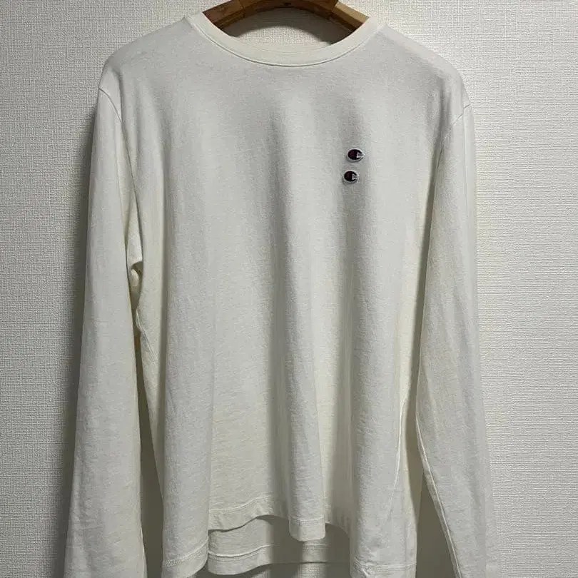 • Champion 자수 로고 티셔츠 화이트 오버 사이즈 [레어 컬러]