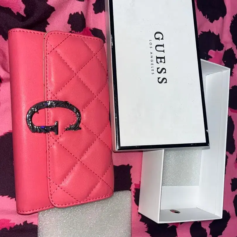 GUESS 핑크 3단 폴더형 지갑